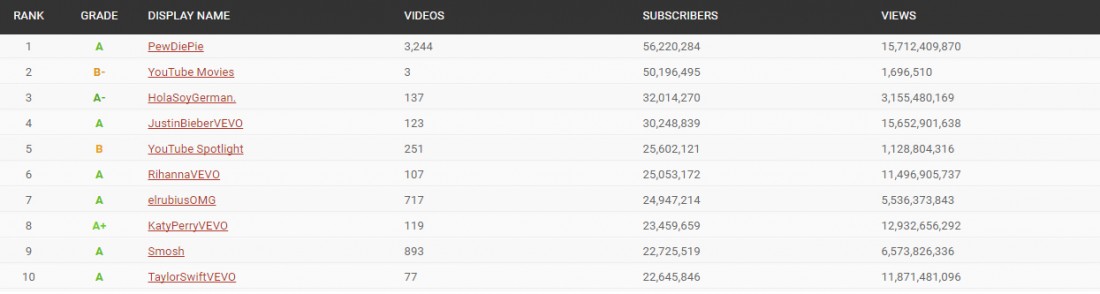 ជាទូទៅគណនី (Channel) YouTube ដែលមាន Subscriber ច្រើន គឺគណនីដែលនិយមបង្ហោះវីដេអូប្លែក ឬគណនីផ្លូវនៃបុគ្គលសំខាន់ៗ ឬស្ថាប័ននានា ខណៈគណនី YouTube មានអ្នក Subscribe ច្រើនបំផុតដល់ទៅជាង ៥៦ លាននាក់ គឺមានឈ្មោះ PewDiePie ហើយមានវីដេអូដល់ទៅ ៣ ២៤៤។